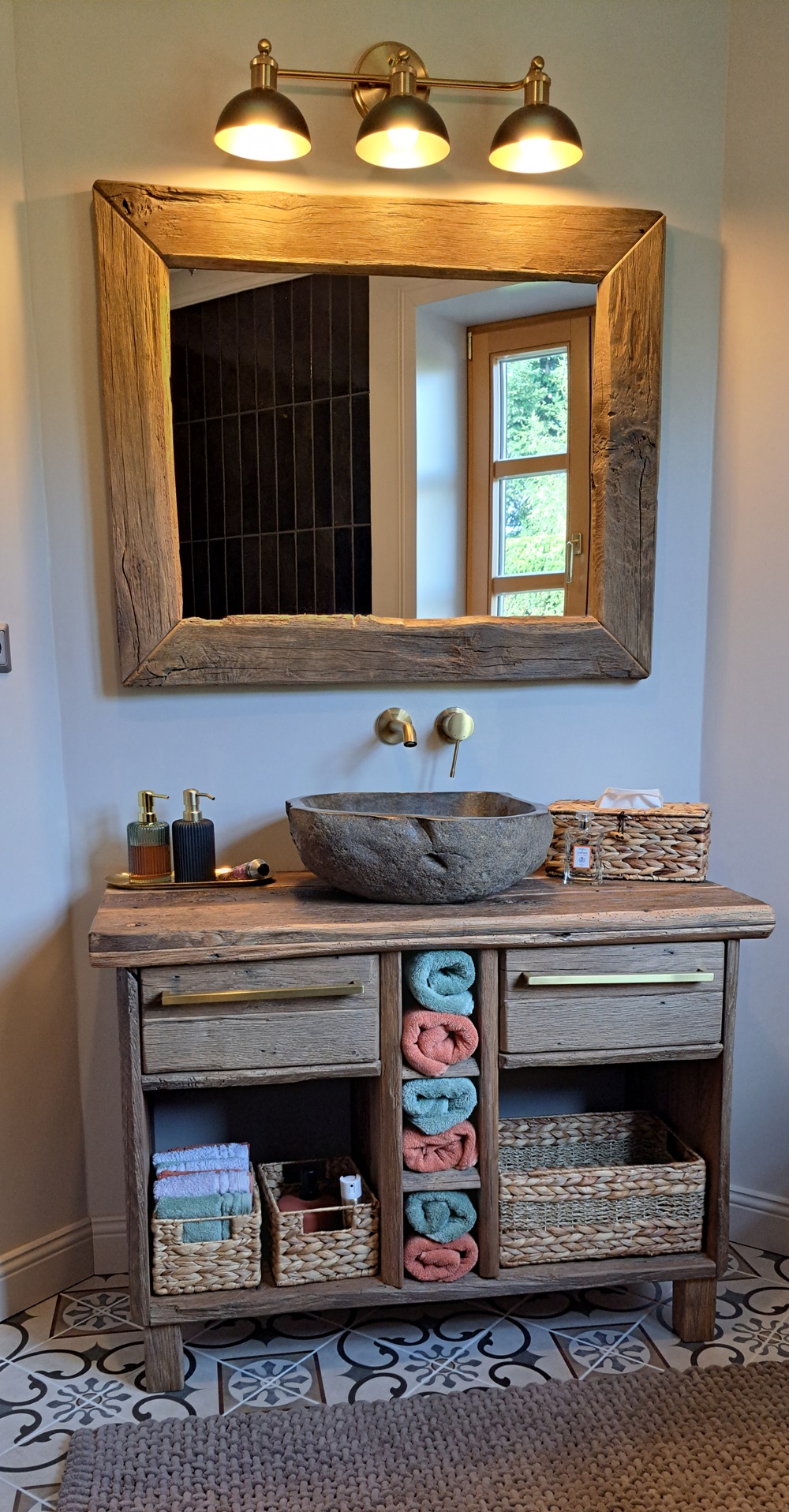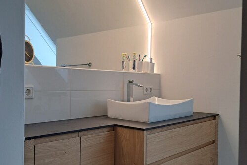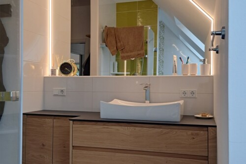 Im Bad zählt jedes Detail, denn man benötigt zwar Stauraum und Ablagen, gleichzeitig soll der Raum aber nicht überladen wirken, sondern zum Wohlfühlen einladen. Auch für verwinkelte oder kleine Räumlichkeiten, wie es bei Badezimmern häufig der Fall ist, finden wir immer eine passende Lösung. Wir nutzen den Raum ideal aus, so dass Sie möglichst viel Stauraum haben, dieser das Zimmer aber nicht klein aussehen lässt. Ihre persönlichen Vorstellungen und Anforderungen stehen dabei immer im Vordergrund. Bei uns gibt es keine Universal-Lösungen: Ihre Badezimmermöbel von der Möbeltischlerei Hinke sind Unikate!